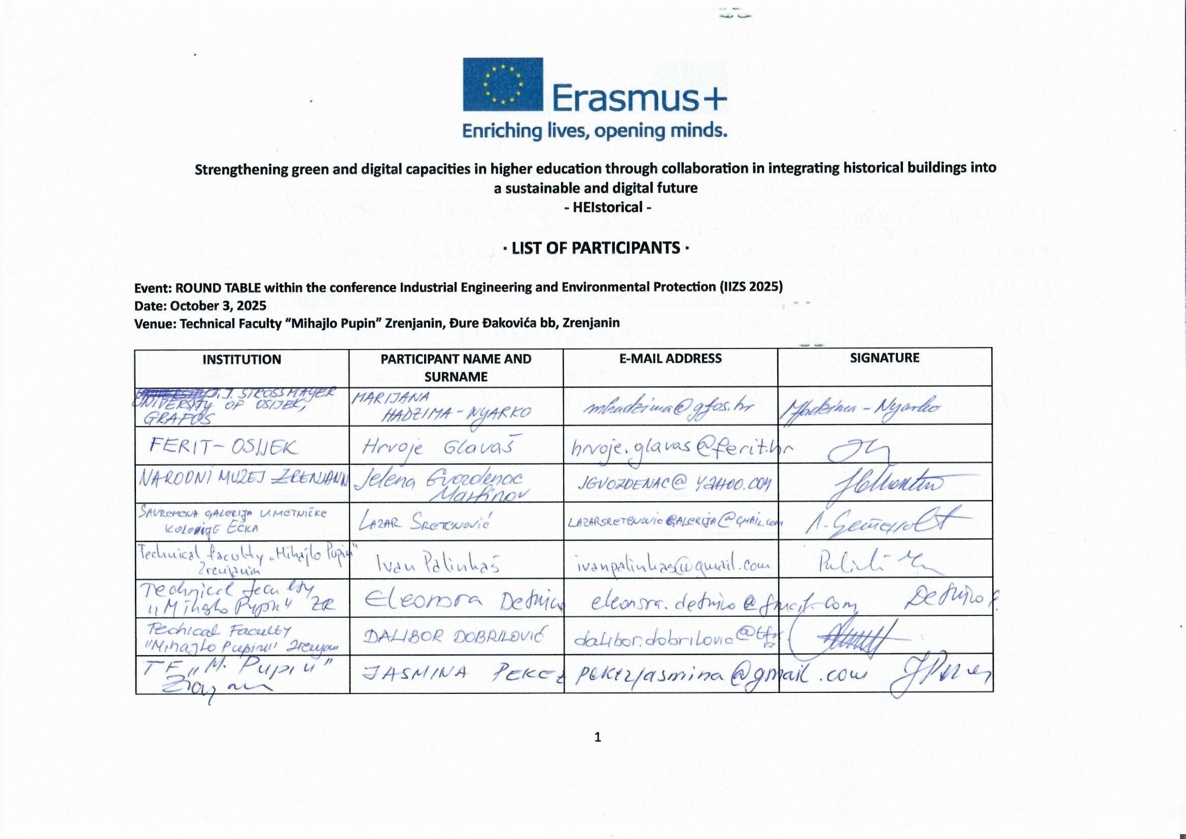 As part of the 15th Industrial Engineering and Environmental Protection (IIZS 2025) conference, a round table dedicated to the Erasmus+ project HEIstorical was held. The event was hosted by the Technical Faculty “Mihajlo Pupin”, University of Novi Sad.